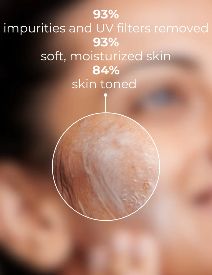 - Các tạp chất bên ngoài và cặn kem chống nắng được loại bỏ hiệu quả = 93%.