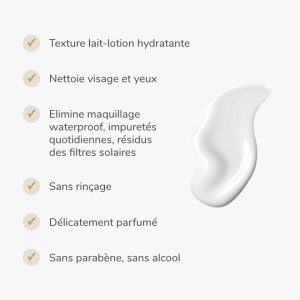 - Loại bỏ cả trang điểm không thấm nước, bao gồm cả mascara và dư lượng kem chống nắng.