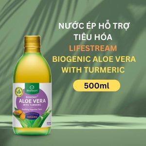 Lifestream Biogenic ® Aloe Vera with Turmeric là một loại thuốc bổ tiêu hóa với sự kết hợp Aloe Vera (Nha đam/ Lô hội) có nguồn gốc được chiết xuất từ gel lá Nha đam nguyên chất 100% qua phương pháp NaturLock ™ và HydroCurc ® – một dạng nghệ có thể phân tán tốt trong nước.