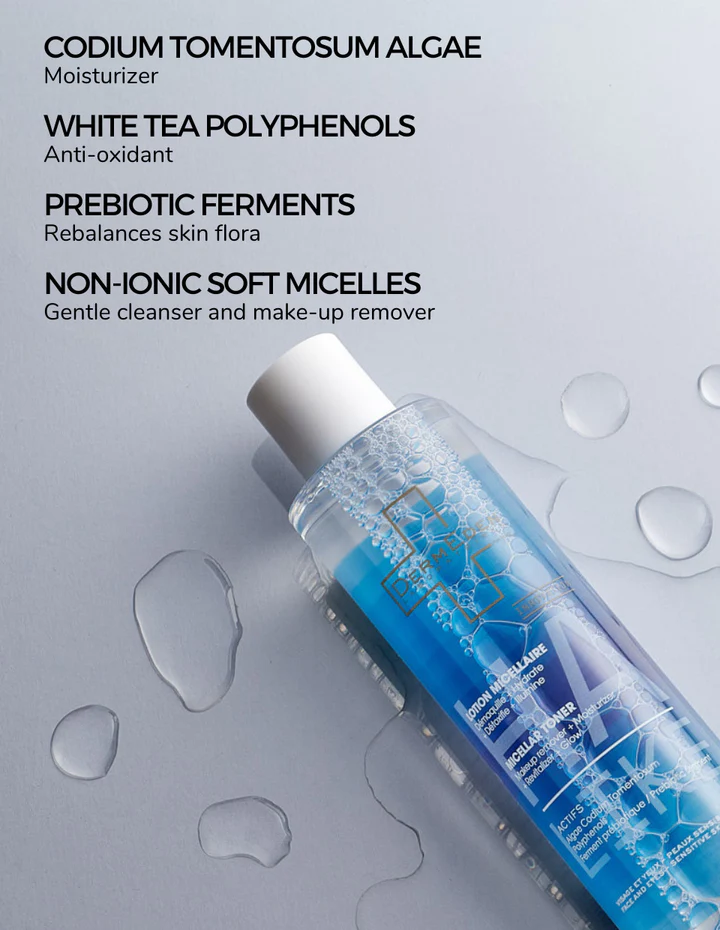 Với bộ ba hoạt chất sinh học, bao gồm tảo biển Codium Tomentosum, DermEden HA-Like Micellar Toner mang lại cảm giác mềm mại và dưỡng ẩm tức thì. Loại tảo đặc biệt này chứa các đường sulfat giúp giữ nước và duy trì độ ẩm suốt nhiều giờ, đồng thời cân bằng hệ vi sinh trên da và tái cấu trúc lớp màng lipid biểu bì.